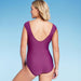 Create an eye-catching look for the beach or pool with the Cap-Sleeve One-Piece Swimsuit from Shade & Shore. This purple swimsuit features a U bar at the center for a standout look. Providing full coverage, this cap-sleeve swimsuit is made with soft and stretchy fabric with full lining to help keep you comfortable while swimming or relaxing on the sand. Plus, it features sewn-in cups for confident coverage.
