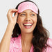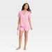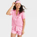 Women's Striped 3pc Satin Short Sleeve Notch Collar Top and Shorts Pajama Set with Eye Mask - Stars Above Rose Pink L