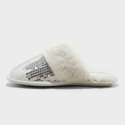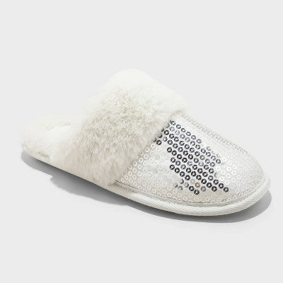 View full detailsWomen's Rae Sequin Scuff Slippers - Auden Silver XL