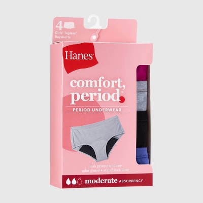 View full detailsHanes Girls' 4pk Boyshort Period Underwear Moderate Protection - 16