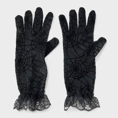 View full detailsHalloween Spider Lace Gloves with Fringe - Black