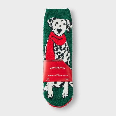 View full detailsKids' 2pk Dalmatian & Striped Cozy Crew Socks with Gift Card Holder - Wondershop Dark Green M/L