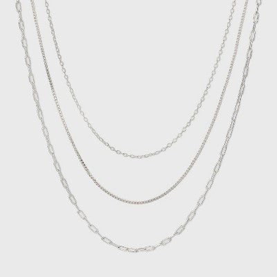 Plated Cable Box and Paperclip Chain Necklace Set 3pc - A New Day Silver