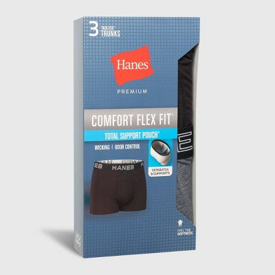 View full detailsHanes Premium Men's 3pk Trunks Total Support Pouch - Black/Gray S