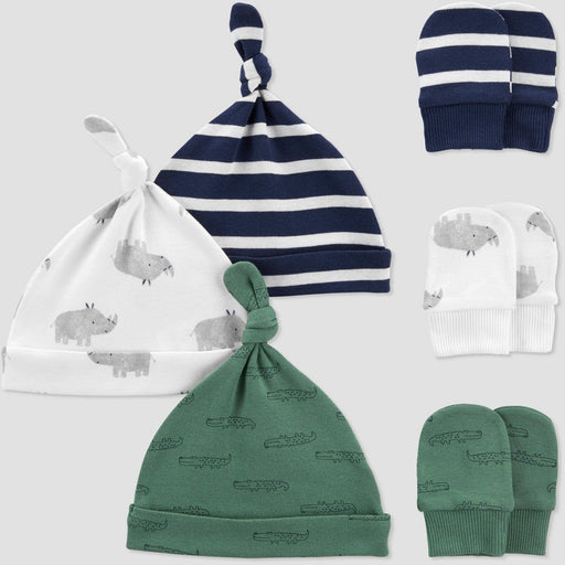 View full detailsCarter's Just One You Baby Boys' 6pk Hat and Mitten Set - Green/Off-White/Navy