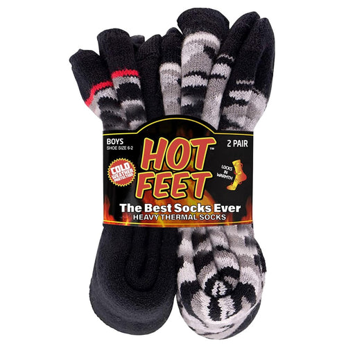 View full detailsHOT FEET Boys And Girls 2 Pack Heavy Thermal Socks - Traps In Warmth – Kids Thick Insulated Crew For Casual Cold Weather Use (Camo/Black)
