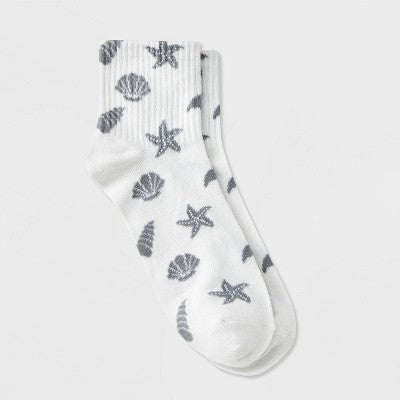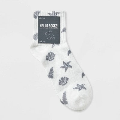 View full detailsWomen's Seashells Ribbed Ankle Socks - Ivory/Gray 4-10: Lightweight Recycled Polyester, Banded Cuff