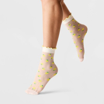 No BrandAdd vibrant prints to your sock collection with these Women's Lemons Ribbed Ankle Socks - White/Yellow 4-10. Made from lightweight fabric, it offer...