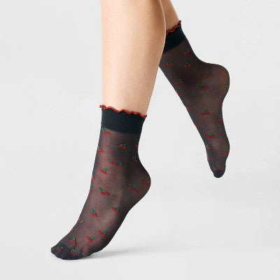 View full detailsWomen's Cherries and Lemons Sheer 2pk Anklet Socks - A New Day Black/White 4-10: Lightweight Knit, Banded Cuff