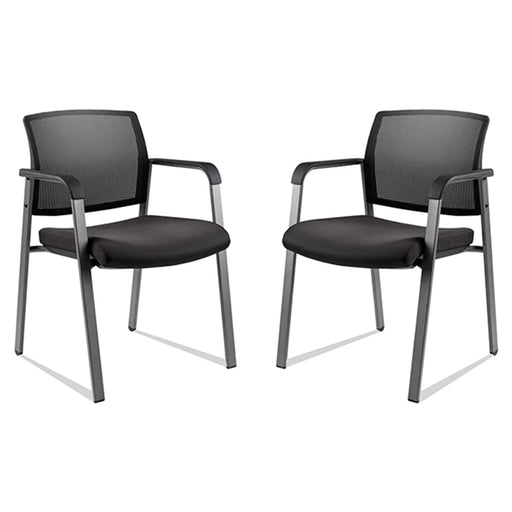 CLATINA Mesh Back Stacking Arm Chairs With Upholstered Fabric Seat And Ergonomic Lumbar Support For Office School Church Guest Reception Black 2 Pack Set (LOCAL PICKUP ONLY)