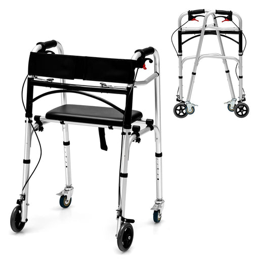 Goplus Walkers For Seniors, 4-In-1 Folding Walker With 5’’ Wheels, Detachable Seat, Height Adjustable Stand Up Walker, Medical Walking Mobility Aid, 350Lbs Rolling Walker For Adult Bariatric Handicap (LOCAL PICKUP ONLY)