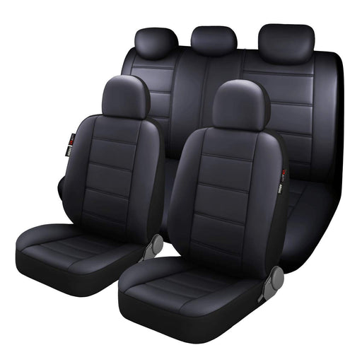 P&J AUTO Premium PU Leather Car Seat Cover Full Set In 11Pcs Universal Fit For Most Cars Suvs Trucks Vans Airbag Compatible Black