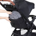 Day trips just became a lot easier with the Passport Cargo Travel System by Baby Trend! Innovative storage solutions allow for quick and easy access to your most essential belongings. A large integrated storage pouch on the back seat of the stroller and front and rear access basket provides the ultimate in convenience for the busy family. The parent tray includes a helpful phone positioner that holds in portrait or landscape mode, along with two large cup holders. The Passport Cargo is equipped with Comfort Cabin, which includes plush seat padding and a large canopy with UPF 50+ protection. Parents will also love the handle with a removable leatherette cover and the quick, easy and compact center fold. This unique travel system includes the EZ-Lift 35 PLUS infant car seat that weighs 7.5 lb and has an integrated Side Grip for ergonomic carrying. The EZ-Lift PLUS handlebar can be pushed forward to provide anti-rebound protection in the event of a collision. The car seat includes a base with a recline flip foot for a comfortable recline angle for baby as well as a bubble level indicator.