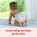 Parenting might be hard, but thanks to Huggies Snug & Dry Baby Diapers, diapering doesn’t have to be. As the only leading brand that is entirely fragrance free,* Snug & Dry newborn diapers are made to be free of fragrances, added lotions, parabens and natural rubber latex. When it comes to keeping your baby dry, Snug & Dry diapers are there for you even in messy situations. Our Snug & Dry infant diapers are up to 100% leak proof, even from blowouts. Made with the original Leak Lock blowout blocker, Snug & Dry baby diapers help protect against blowouts and ensuing messes. Additionally, these diapers are designed with a curved and stretchy fit for outstanding leakage protection. Made to help your baby live their best life, our infant diapers feature 2X comfort design to provide outstanding softness and gentle protection. An added wetness indicator changes colors when the diaper is wet, allowing you to know right when the diaper needs to be changed. Featuring exclusive Disney designs, Huggies Snug & Dry Diapers are available in size Newborn (6-9 lb.), size 1 (8-14 lb.), size 2 (12-18 lb.), size 3 (16-28 lb.), size 4 (22-37 lb.), size 5 (27+ lb.), size 6 (35+ lb.), size 7 (41+ lb.) and size 8 (46+ lb.). (*among leading national diaper brands, across all offered variants) (**among branded open diapers. Excludes preemie size.)