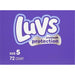 DeLuvs Platinum Protection Baby Diapers, Size 5, 72 Count, provide powerful leak protection for babies weighing 27+ lbs. The super absorbent core locks away moisture, while the soft, flexible design ensures a snug and comfy fit all day. With NightLock technology and refastenable tabs, Luvs keeps baby dry and happy at an unbeatable price.signed for growing babies, Luvs Platinum Protection Diapers offer unbeatable leak protection and a comfortable fit. The ultra-absorbent core and stretch sides make these diapers perfect for both daytime and nighttime use.