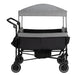 The Summit Quad Wagon Stroller can either be pulled from the front handle like a traditional wagon or pushed like a stroller with the fold-away back handlebar. There’s plenty of storage with 4 storage pockets on the inside, 2 on the outside, and an extra fold-away basket. The removable canopy with UV protection can be tilted and adjusted as needed. After each adventure, the wagon folds up with 1 hand for quick and easy storage.