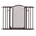 The Summer Union Arch Safety Gate is the perfect compliment to any decorating style including a sturdy metal frame with espresso-brown finish, arched doorway and integrated handle. The decorative urban inlay is made from durable plastic which gives an updated look to the gate, with safe edges for little fingers and puppy noses. This gate stands 30" tall and fits openings 28"- 42" wide using the two included extension frames. For added hands-free convenience, the Union Arch Safety Gate is equipped with an auto-close feature which gently closes the gate door behind you, as well as a hold-open mechanism that keeps the door open when needed. This gate can be installed in doorways and stairways. Hardware mounting kit is included.
