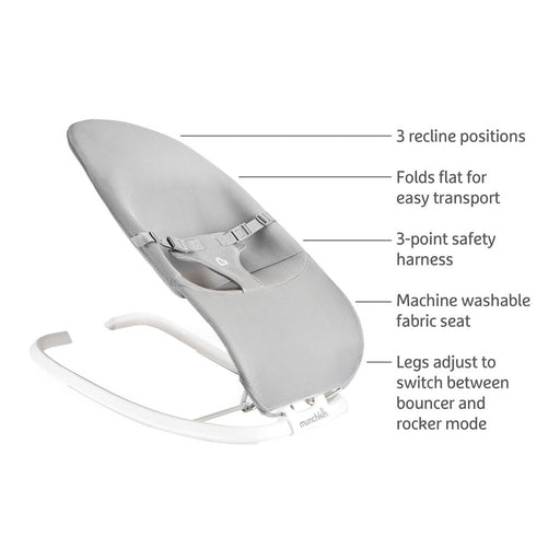 MunchkinSay goodbye to bulky baby gear! The Spring 2-in-1 Bouncer & Rocker is a modern take on a classic must-have, designed with function, safety, and...