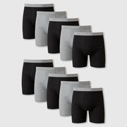 STAY COOL. STAY COMFYThis Hanes Super Value pack includes ten pairs of men's boxer briefs crafted from soft and breathable cotton for everyday comfort (heathered styles are a cotton-rich blend). You'll stay cool thanks to moisture-wicking Cool Comfort fabric that helps keep you comfortable - no matter how long your day. You'll also appreciate the no-ride-up fit, Tagless interior, and a Comfort Flex waistband that stretches and moves when you do. Stock up with this multi-pack of men's boxer briefs in black and gray