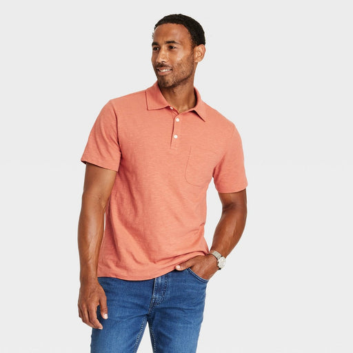 Men's Slub Jersey Polo Shirt - Goodfellow & Co Peach Orange XXL