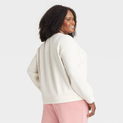 Women's Sandwash Pullover Sweatshirt - A New Day Cream XXL
