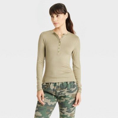 View full detailsWomen's Henley Neck T-Shirt Universal Thread Olive Green XS