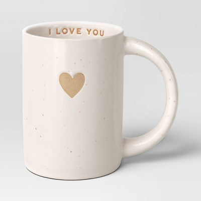 View full details14oz Stoneware Embossed Heart I Love You Mug Ivory - Room Essentials
