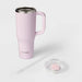 Elevate your everyday drinking experience with this 40-Ounce Steel Straw Tumbler from Embark™. Made from stainless steel, this tumbler comes with a plastic straw and features a sippable lid with a straw hole. Designed in a solid cream hue, it also features a side handle that makes it easy to hold and carry. It's suitable for holding both hot and cold beverages, and you can toss it in the dishwasher after use for easy cleaning.