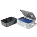 The interior features a hard liner with an adjustable divider designed to keep soft foods like sandwiches separated from hard items like food containers or drinks. The liner and divider are removable so that you can fit standard size bento containers up to 9 x 6.5” inside the lunch box.