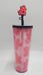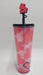 Valentine’s Day Plastic Cold Cup with Straw Topper – 24 fl oz Double-wall Plastic, Silicone flower straw topper with opaque straw, Tinted lid, liner and outer, Artwork printed on PET, Wordmark