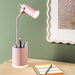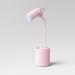 This Task Table Lamp with Nightlight from Room Essentials™ is a practical addition to your study room or workstation. This task lamp features an integrated bulb and a cylindrical base with a bottom rim that lights up on touch. The base also boasts a section to keep pens, pencils and other items, plus two USB ports for your gadgets. Designed in a pink hue with matte finish, this task lamp brings soft, pastel vibes to your space.