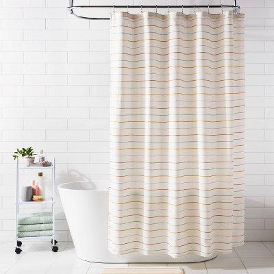 Room EssentialsEnhance the visual appeal of your bath space with this Fabric Thin Striped Shower Curtain from Room Essentials™. Showcasing thin stripes in rust, o...