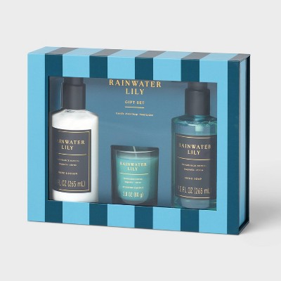 3pc Rainwater Lily Personal Care Hand Soap and Lotion Candle Gift Set Blue - Threshold (LOCAL PICKUP ONLY)