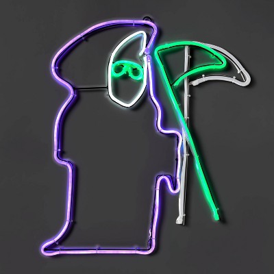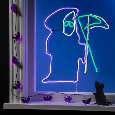 Hyde and EEK! BoutiqueAdd a neon-look glow to any window, door or wall with the Reaper with Motion Rope Halloween Light Sign from Hyde & EEK! Boutique™. Glowing in g...