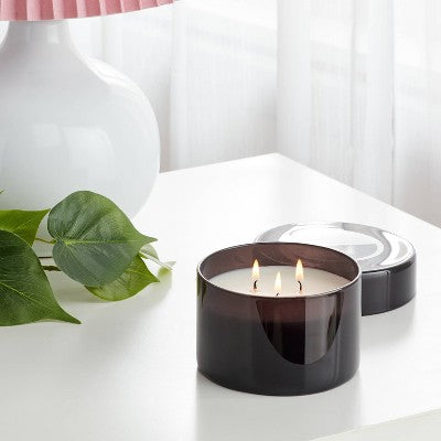 View full details3-Wick Glass Jar Candle with Lid Vanilla Teakwood 11.5oz - Room Essentials