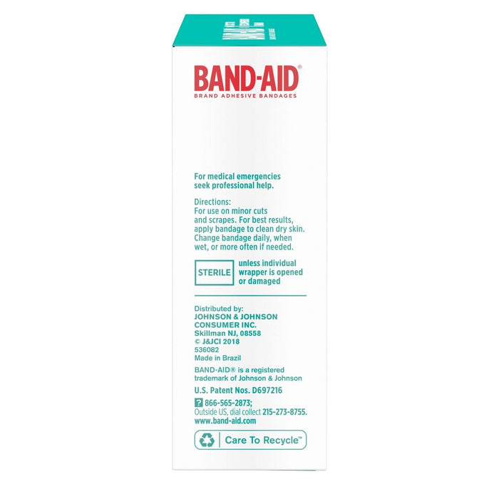 Band-Aid Brand Skin-Flex Adhesive Bandages are the only Band-Aid Brand Adhesive Bandage designed for lasting durability and exceptional comfort. With a flexible pad that fits snug even on hands, fingers and knees, these flexible bandages dry almost instantly when wet and stay intact even through handwashing. With MotionMax Technology, the active bandages expand and contract for the ultimate skin-like fit. These sterile bandages have a four-sided seal on larger sizes, so they help protect your minor wounds from dirt and germs that may cause infection or delay healing as they provide a 24-hour hold that withstands damage and frays. The Quilt-Aid Comfort Pad on each Band-Aid Brand Skin-Flex Adhesive bandage wicks away blood and fluids without sticking to wounds, while lightweight cross-fibers stretch and flex to mold to your body. This package contains flexible adhesive bandages in assorted sizes to protect your minor cuts, scrapes, burns and wounds.