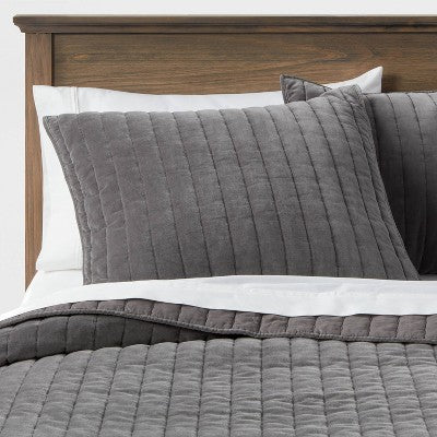 Euro Channel Stitch Velvet Sham Quilt Sham Charcoal - Threshold: OEKO-TEX Certified, Cotton Backing, Machine Washable
