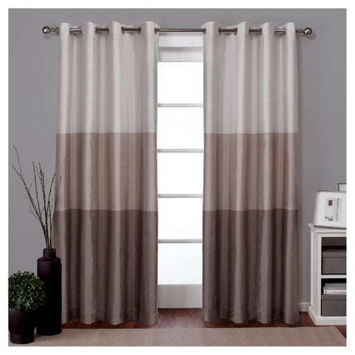View full detailsSet of 2 84"x54" Chateau Striped Faux Silk Grommet Top Window Curtain Panel Taupe - Exclusive Home