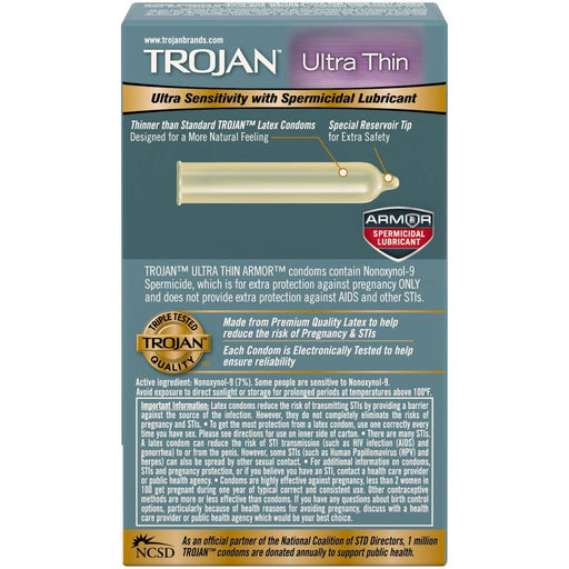 TrojanTROJAN™ Ultra Thin Armor™ Spermicidal Lubricant Condoms are thinner than standard TROJAN™ latex condoms – and are designed for a more natural feeli...
