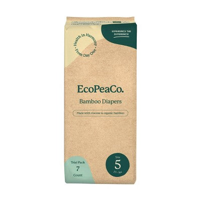 View full detailsEcoPeaCo. Bamboo Disposable Diapers Made with Organic Bamboo and Viscose - Trial and Travel - Size 5 - 7ct