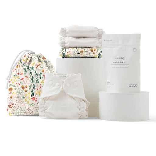 Esembly Try-It Kit - Cloth Diaper Starter Set With Organic Cotton Diapers, Waterproof Diaper Cover, Wet Bag, And Laundry Detergent - Fantastic Fungi, Size 1 (7-18Lbs)