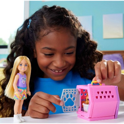 View full detailsBarbie Chelsea Puppy Playset 3" Doll and Dog Carrier with Accessories