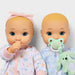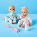 Give your tiny tot a cute option for play with the Boy Girl Twin Baby Dolls from Gigglescape. These baby dolls are dressed in printed pajamas and have blonde hair and blue eyes. The set includes two pacifiers, bottles, dog plush pacifier attachments and 1 headband. These baby dolls make a great addition to your baby's toy collection or a perfect gift option.