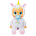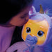 Have sweet dreams with Cry Babies Goodnight Dreamy! Dreamy wears the softest unicorn themed pajams. She cries LED light up tears and makes realistic baby sounds when you remove her matching pacifier. Give her a paci and she will stop crying and watch as her face lights up! When you press her belly she will play up to 10 minutes of soothing lullabies to help soothe your child as they fall into a dreamy sleep. Dreamy is the perfect night light and cuddle partner for relaxing nights when you just want to cuddle up in your cozy bed. Recommended for ages 18 months and up!