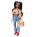 This Disney ily 4EVER doll, inspired by Belle from Disney’s Beauty and the Beast, is all about being a smart shopper with style from the roses on her balloon sleeve blouse to the rose pattern on her wide legged jeans. She’s a true dark-haired, brown-eyed beauty in her dangling single rose earrings, open toe cross strap sandals, and sunglasses. And with her Chip-inspired purse, water bottle, and shopping bag, she’s sure to be the belle of the mall.