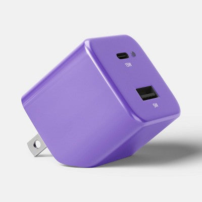 View full detailsDual Port (A+C) Wall Adapter - heyday Purple: 20W USB & USB-C Charger