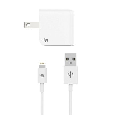 Just Wireless 2.4A/12W 1-Port USB-A Wall Charger with 5' TPU Lightning to USB-A Cable - White