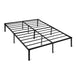 [Premium Support System] Engineered with durable steel construction and 11 sturdy support legs, this queen bed frame delivers exceptional stability for peaceful sleep. Features protective floor pads to safeguard your flooring., [No Box Spring Required] This modern queen-size bed frame eliminates the need for a box spring, providing direct mattress support while maintaining optimal comfort. Compatible with headboards and footboards (sold separately) for customizable style options., [Maximized Storage Space] The 14-inch height creates valuable under-bed storage space, perfect for organizing seasonal clothing, shoes, and other items. Keep your bedroom clutter-free while maximizing your living space., [Noise-Free Design] Expertly engineered with a solid steel construction that eliminates squeaking and wobbling, ensuring peaceful, undisturbed sleep night after night. Each component is precision-fitted for superior stability., [Quick Setup & Universal Fit] Simple assembly process with all hardware and tools included. Perfectly sized at 80 x 60 x 14 inches (LxWxH) to accommodate any queen mattress while complementing various bedroom styles, from modern to traditional.