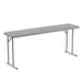 TRAINING TABLE: rectangular folding table for classrooms and training facilities; Multipurpose table for sip and paint parties, travel salespersons and information pamphlets for students and trainees, 6-Foot Commercial grade folding table; Seats up to 3 adults; water and stain resistant; easy to clean, 1.75" thick gray top; Powder coated locking legs with protective floor caps; 220 lb. static load capacity, No assembly is required for instant use, PRODUCT MEASUREMENTS: Overall Size: 18"W x 70.8"D x 29"H; No Assembly Required
