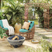 Kick up your feet and relax in your own outdoor oasis with this Topanga Club Chair with Ottoman Set from Opalhouse™ designed with Jungalow™. With a curved-back club chair, coordinating ottoman and comfortable seat cushion included, this patio chair and ottoman set instantly gives you a stylish and soothing spot to relax on your patio or deck. Designed with steel frames complemented by all-weather resin wicker, this boho club chair and matching ottoman also boast a rust-resistant and weather-resistant construction to help them stand up to the elements.